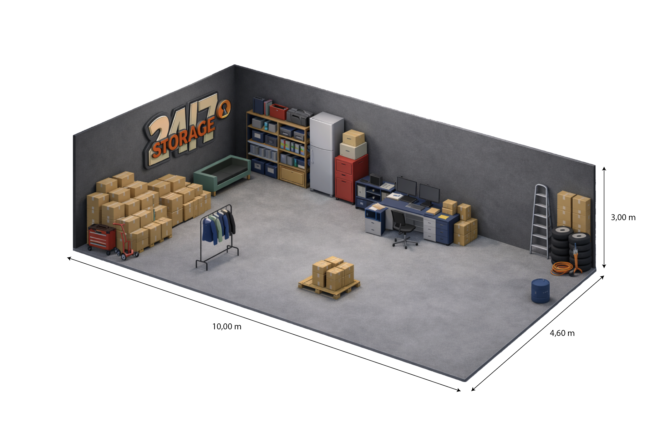 Heeft u behoefte aan meer opslagruimte? Onze 46 m² opslagunit biedt een royale en veelzijdige oplossing voor zowel particulieren als bedrijven die grotere volumes willen opslaan. Of het nu gaat om de opslag van volledige inboedels, zakelijke voorraden, bouwmaterialen of werkmateriaal: met deze unit heeft u ruimte genoeg om alles veilig en overzichtelijk op te slaan.